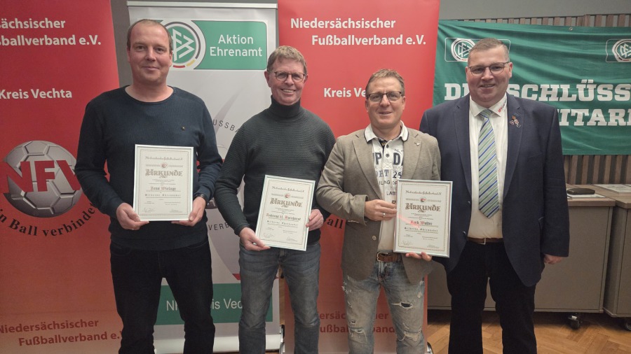 Beim jährlichen Ehrenamtstag des NFV Kreises Vechta wurden gleich drei Sportkameraden von GW Brockdorf mit der Silbernen Ehrennadel des NFV geehrt: